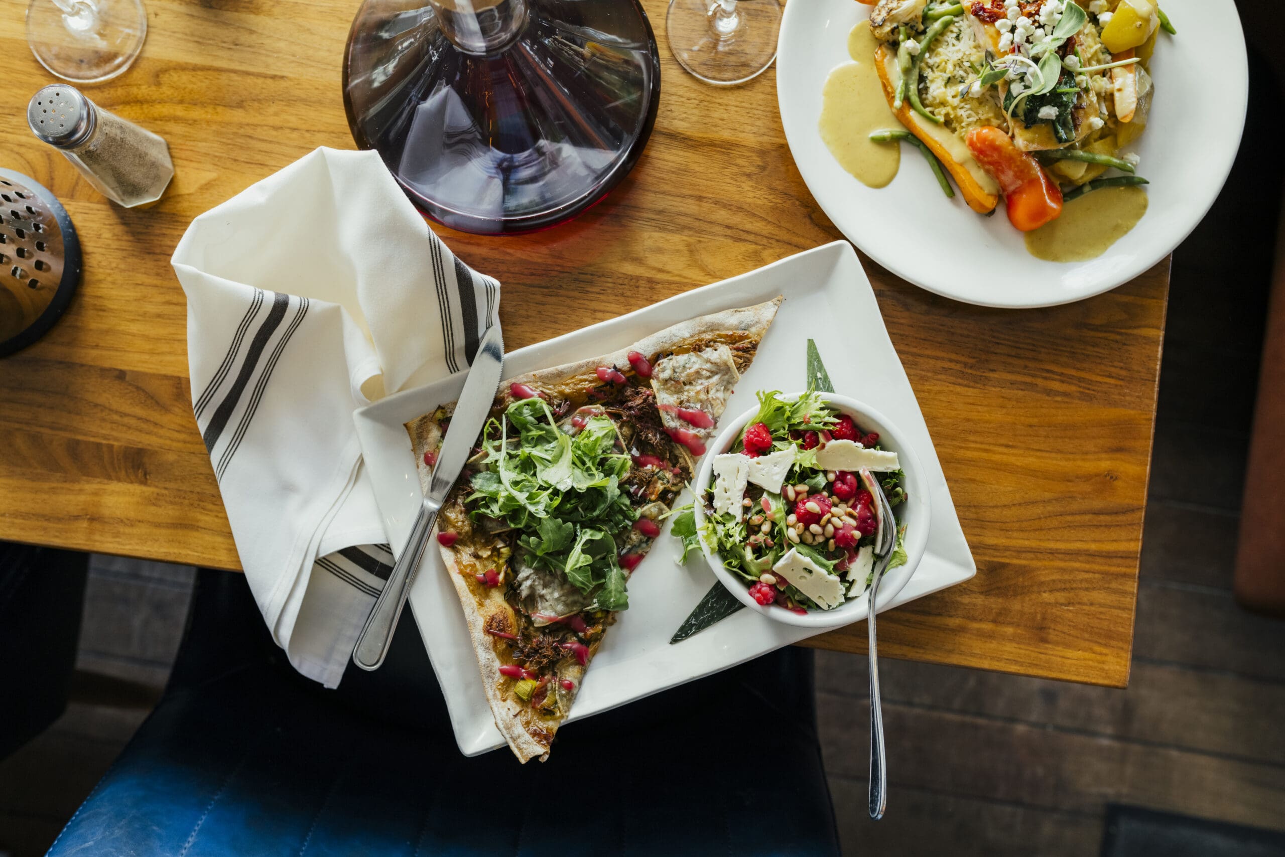 Mascarpone au chipotle, mozzarella, oignons rouges, piments jalapeño, oignons confits, émincé de bœuf et chimichurri